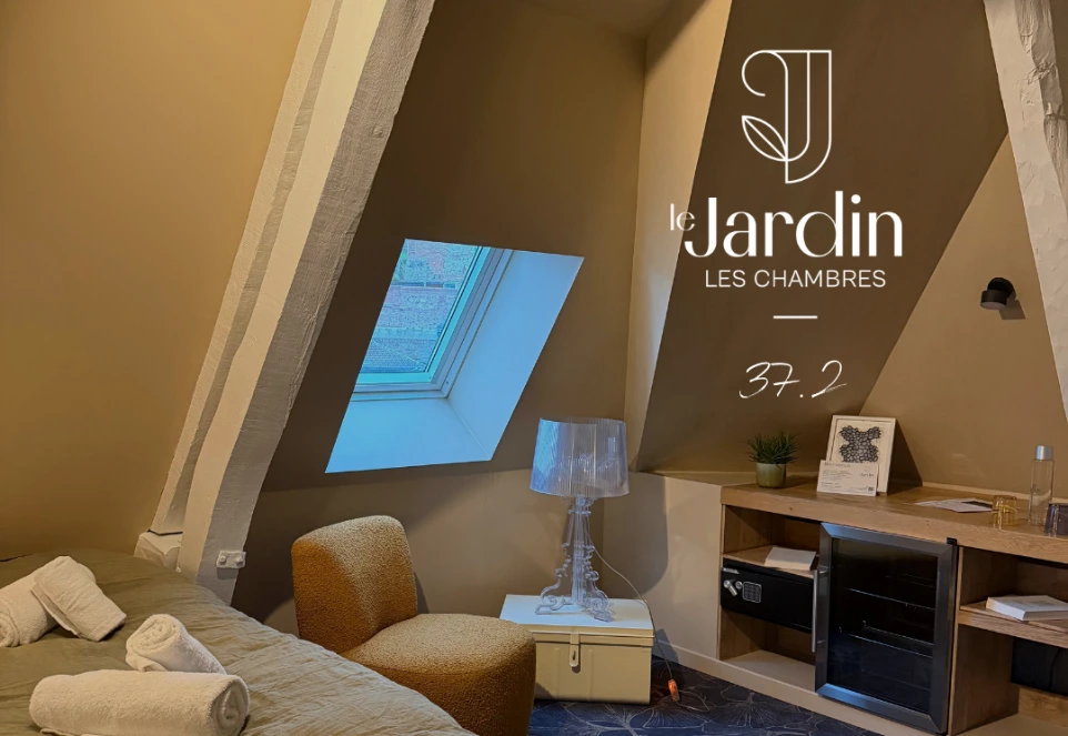 Ouverte en juin 2025, la chambre 37.4 est la dernière-née de notre maison d’hôtes située au-dessus du Jardin. Accessible par une passerelle privative, elle offre un charme unique dès l’arrivée. Spacieuse, lumineuse et décorée avec soin, elle mêle confort moderne et ambiance apaisante. Un véritable cocon, idéal pour se ressourcer après une journée en Baie de Somme. Le tout, à deux pas du centre historique et de nos restaurants.